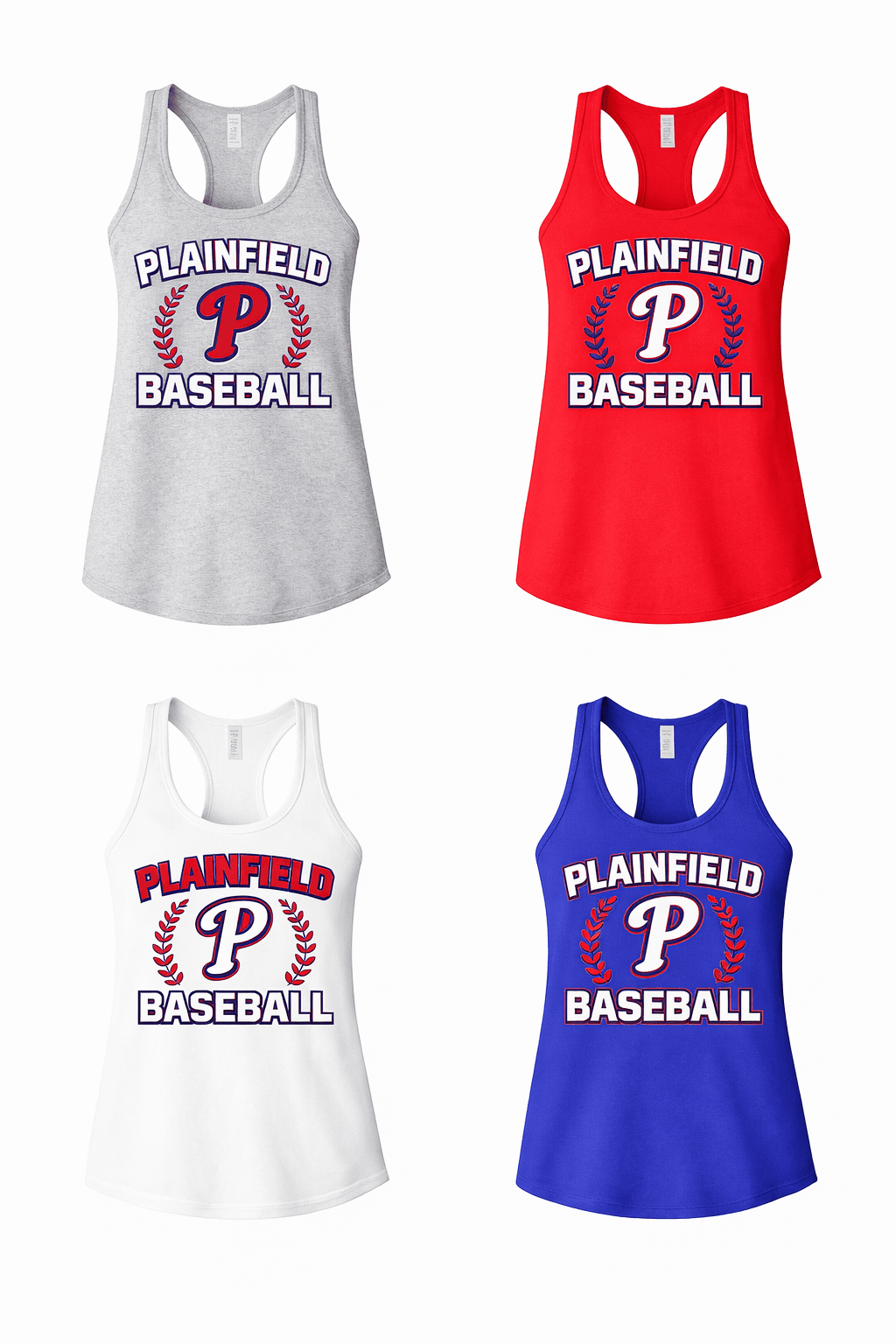Represent your team in style in a Plainfield Baseball Pennant Logo Racerback Tank Top. Made with a simple, classic design on a super soft, breathable cotton/poly blend, in a Women’s Jersey Racerback Tank, you will be sure to be in comfort all nine innings.