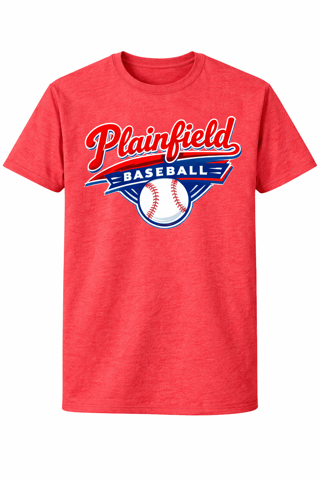 Represent your team in style in a Plainfield Baseball Pennant Logo T-shirt. Made with a simple, classic design on a super soft, breathable cotton/poly blend Bella Canvas Tee, you will be sure to be in comfort all nine innings.