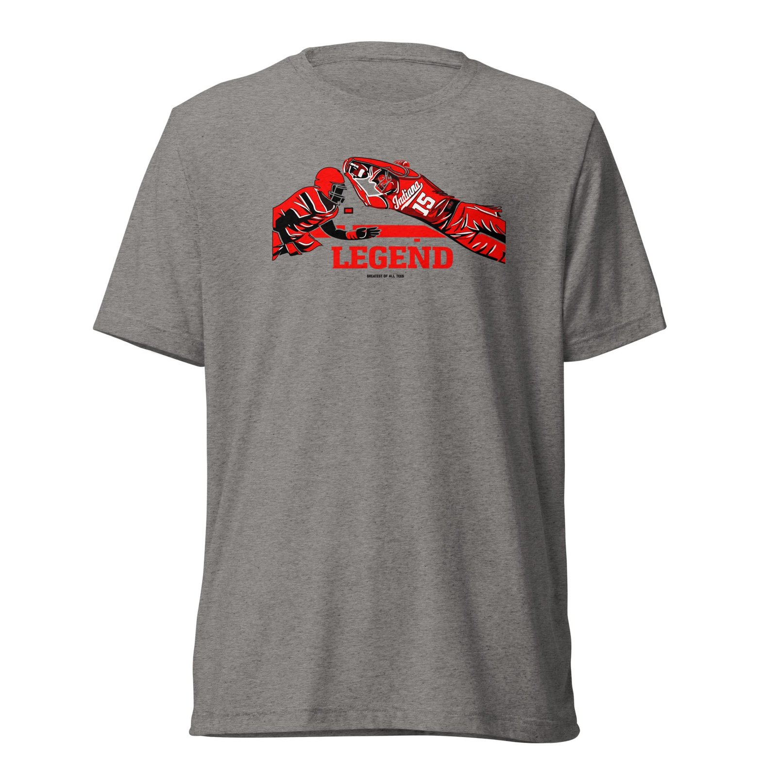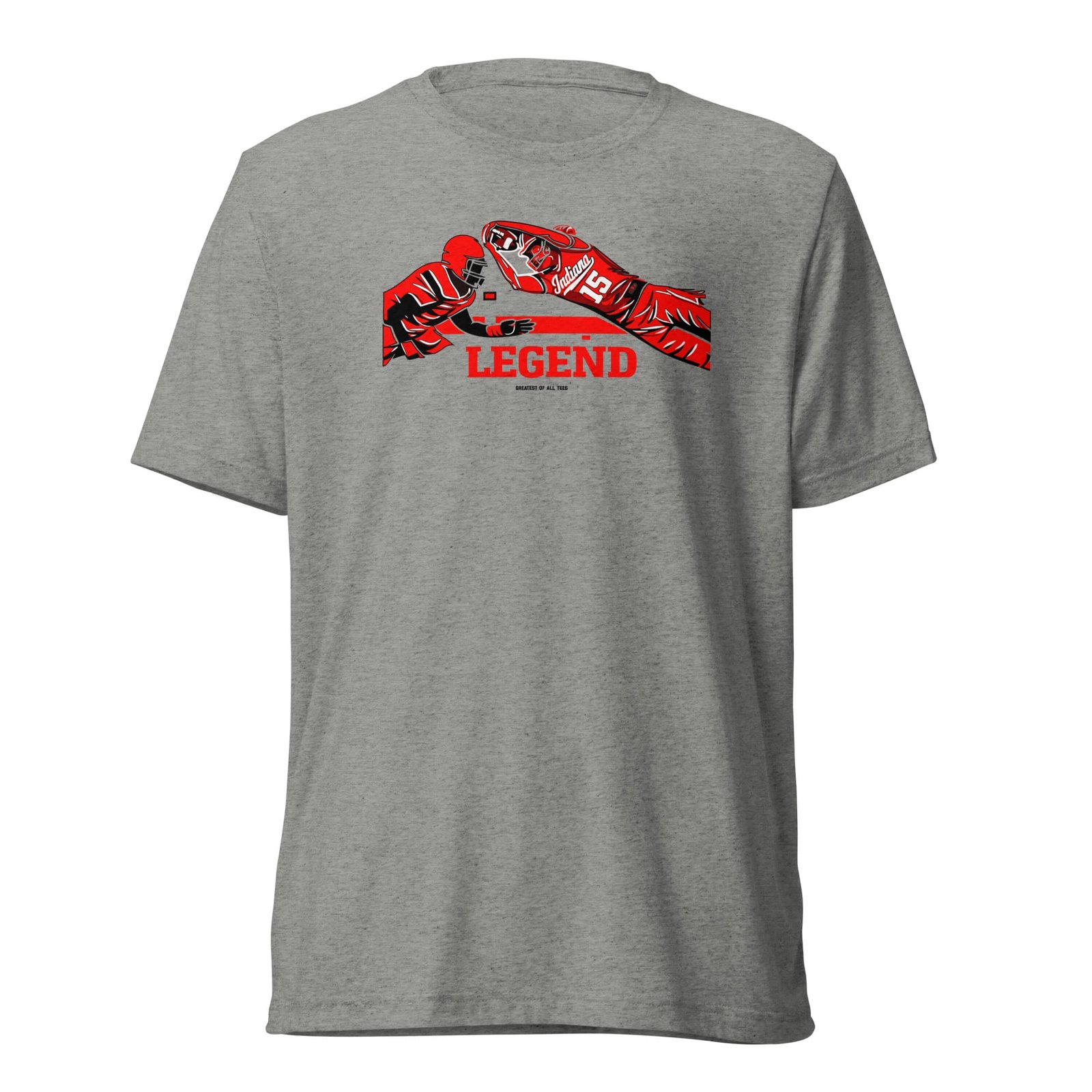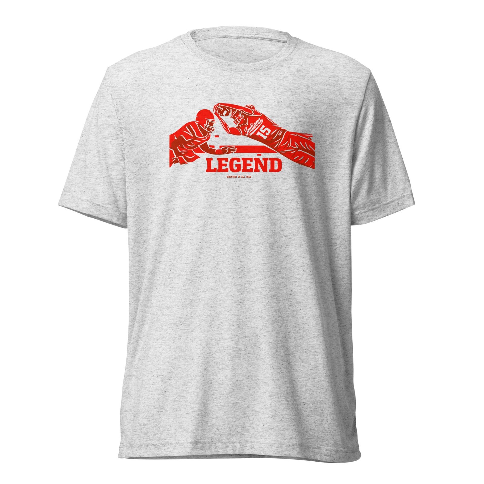 Relive the iconic moment of the big game in a GOAT Indiana Legend Heismendoza Football Tee by Greatest of All Tees. Celebrate the undefeated season in style and comfort like a legend! The tri-blend fabric creates a vintage, fitted look with extreme durability that makes this t-shirt withstand repeated washings and still remain super comfortable without shrinking.