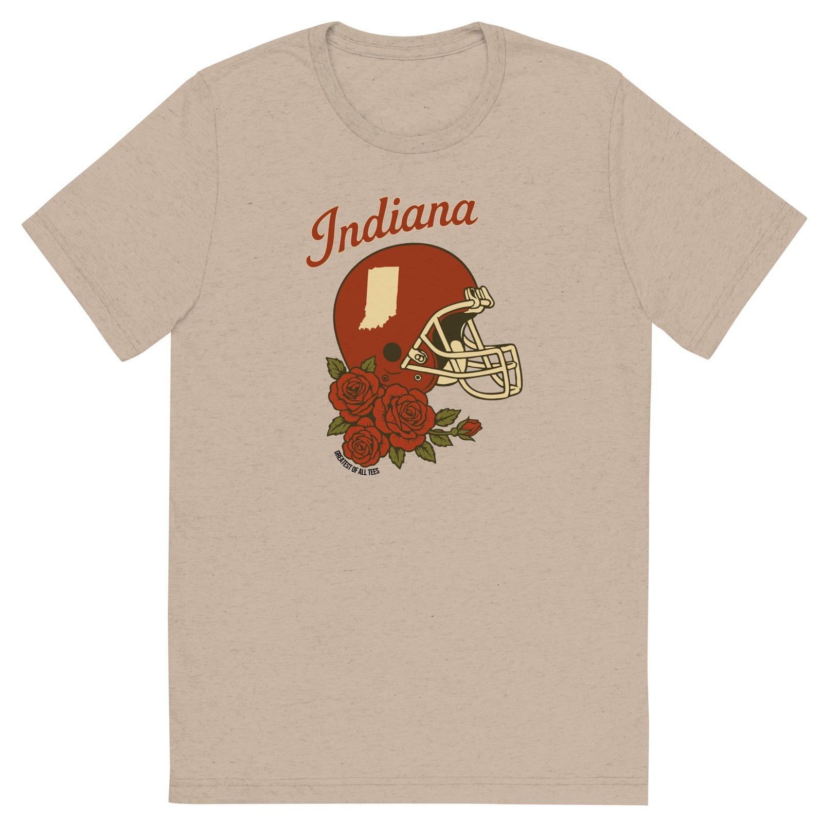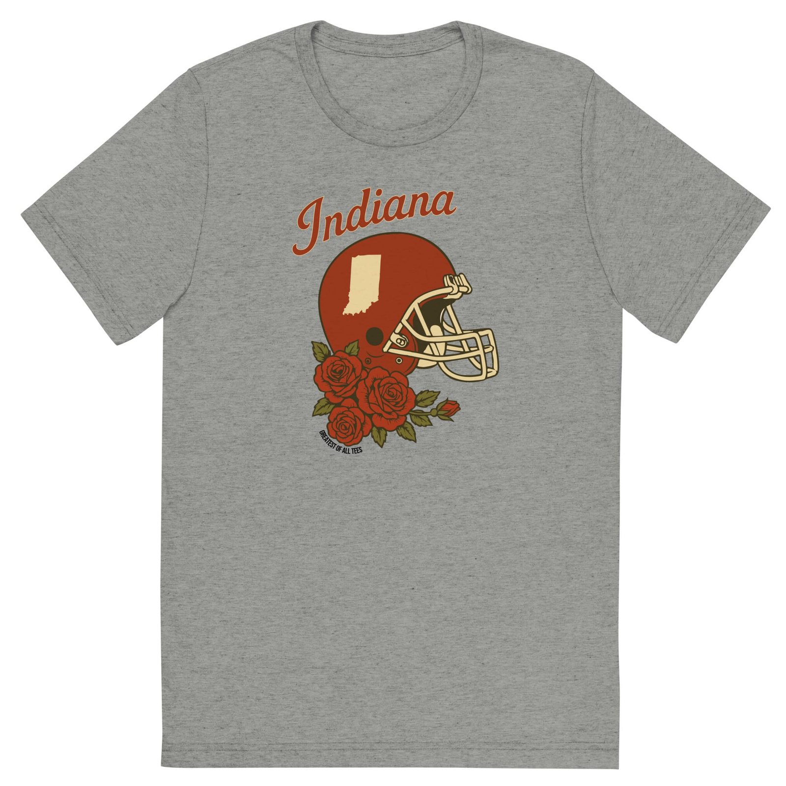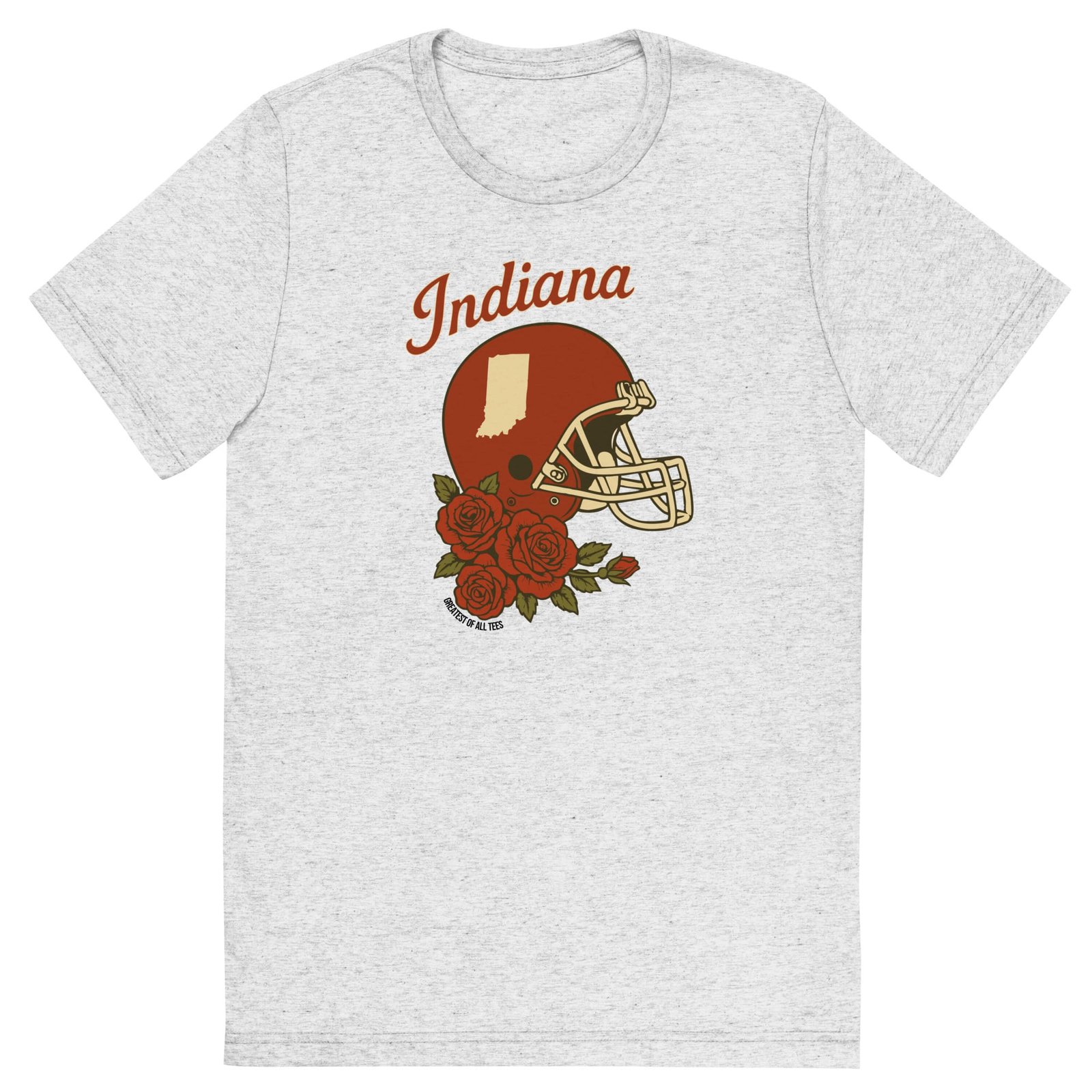 GOAT Limited Edition Bunch of Roses and Indiana Football Helmet Tee is the perfect tee to represent your love for Bloomington football. The tri-blend fabric creates a vintage, fitted look with extreme durability makes this t-shirt withstand repeated washings and still remain super comfortable without shrinking.